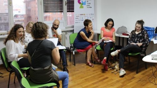 Ľubica i Partick iz organizacije SYNCLOUD su kroz prezentacije ukazali na najčešće pogreške koje se, posebice neizvornim govornicima, događaju prilikom korištenja engleskog jezika u govoru i pismu. Korišteni su primjeri there/their/they’re , your/you’re, its/it’s, glagoli to borrow/to lend, to learn/to teach i mnogi drugi. Sudionici su upoznati s mogućim i nemogućim, odnosno poznatim i nepoznatim frazama iz engleskog jezika. Radionica je nastavljena slušanjem s razumijevanjem izvornih govornika engleskog jezika iz različiti država svijeta, odnosno bilježenjem onog što smo čuli. Za kraj smo na primjeru prerađenog teksta iz New York Timesa ispravljali pravopisne greške. Sudionici su kroz konkretne primjere osvijestili svoje pogreške, dobili priliku testirati svoje znanje i naučiti nova znanja.