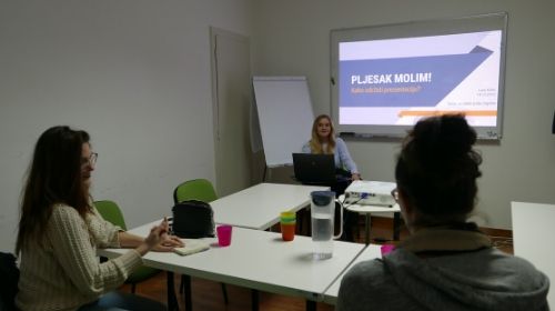 Radionicu će voditi Lana Kotlo, studentica 3. godine socijalnog rada u Zagrebu koja u slobodno vrijeme volontira u Nacionalnom pozivnom centru za žrtve kaznenih djela i prekršaja održala je zanimljivo predavanje na kojem je bilo dvije sudionice. S velikim iskustvom iza sebe u izlaganju prezentacija i javnih nastupa na zanimljiv je način prezentirala kako održati prezentaciju i da ti to ne predstavlja problem.