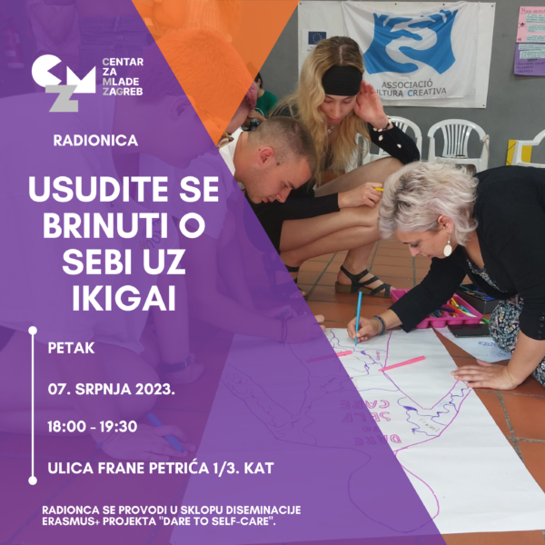 Ako želite malo raditi na sebe te otkrivati svoju strast i svoj put, pozivamo vas na radionicu “Usudite se brinuti o sebi uz Ikigai” koja će se održati u sljedeći petak, 07. srpnja od 18:00 do 19:30 sati u prostoru Centra za mlade u Petrićevoj 1.